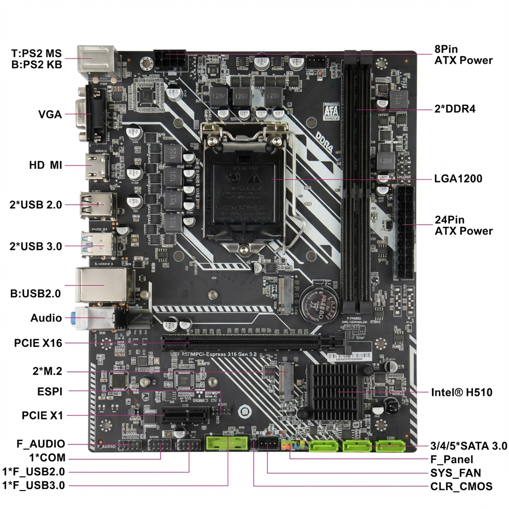 Intel® H510 chipset motherboard with LGA1200 socket support